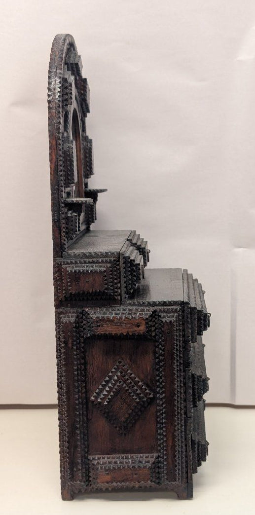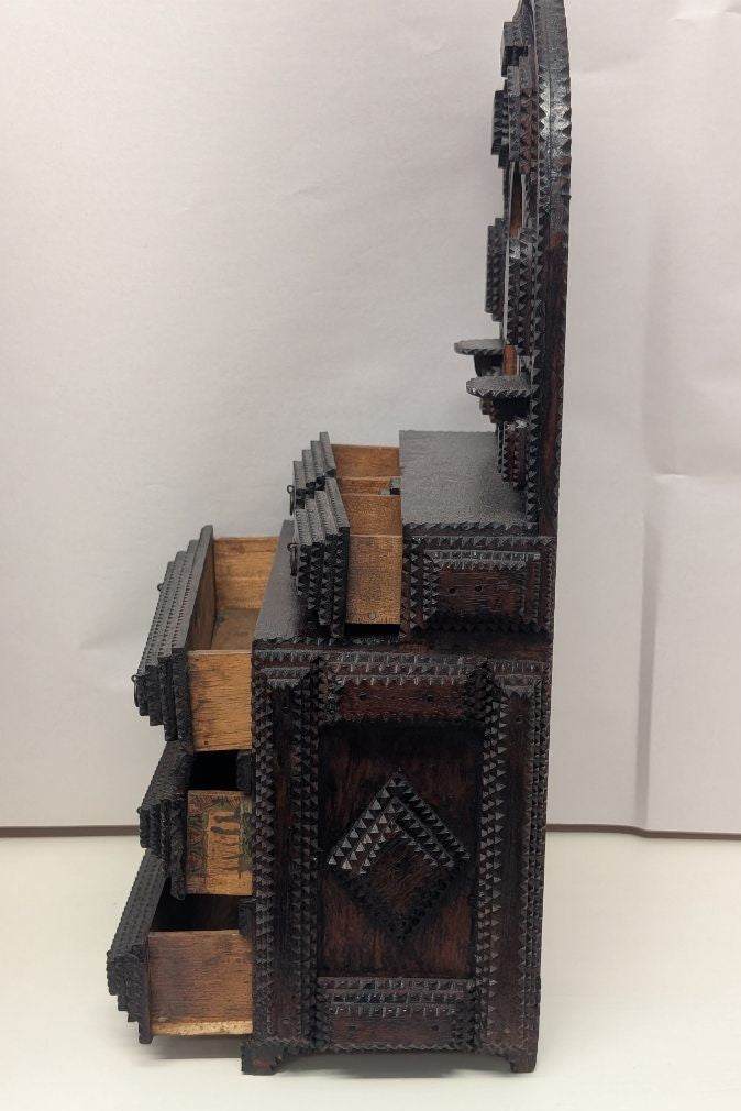 Antique Tramp Art Wood Jewelry Box