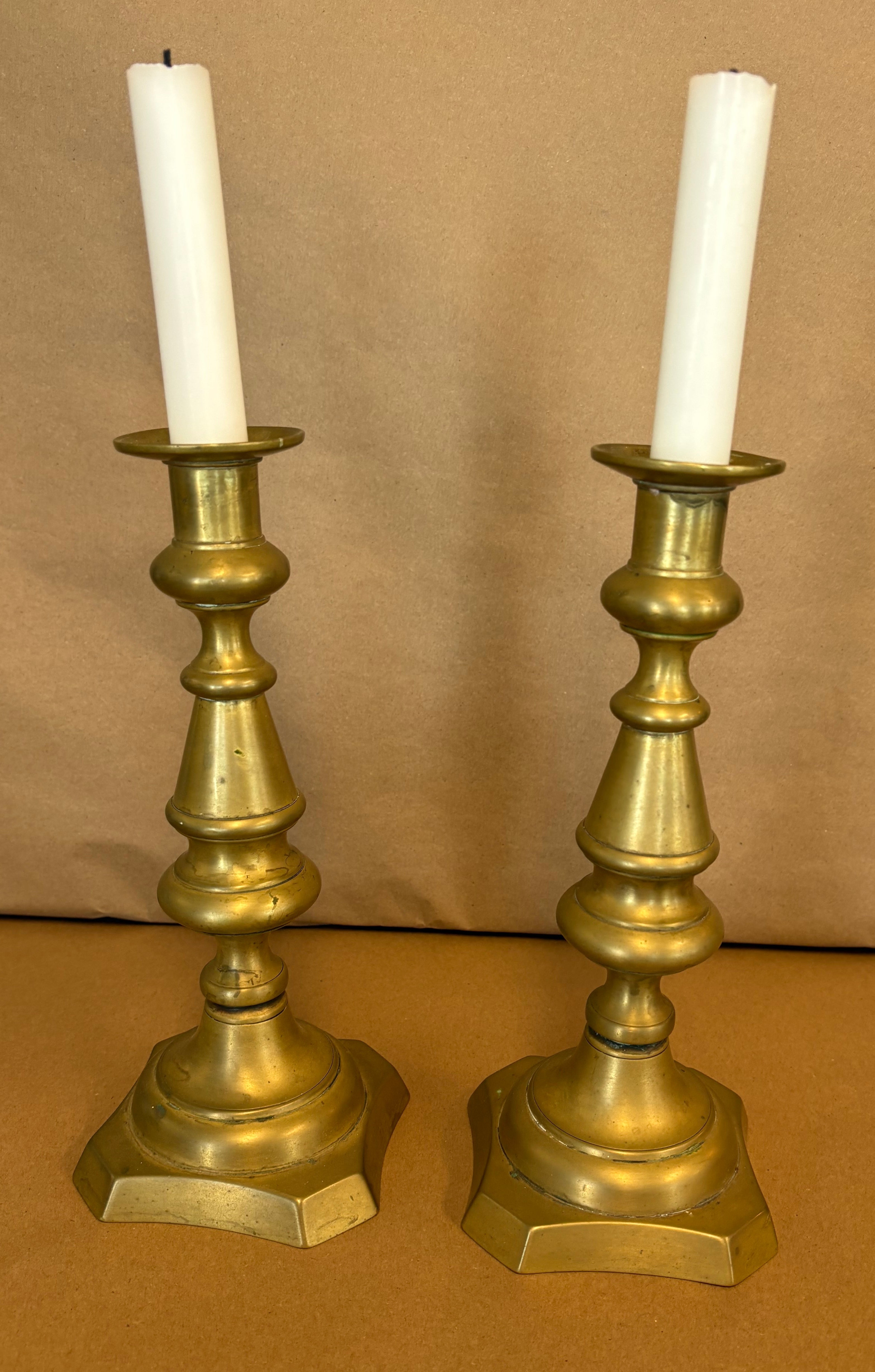 pair of tall brass candle sticks