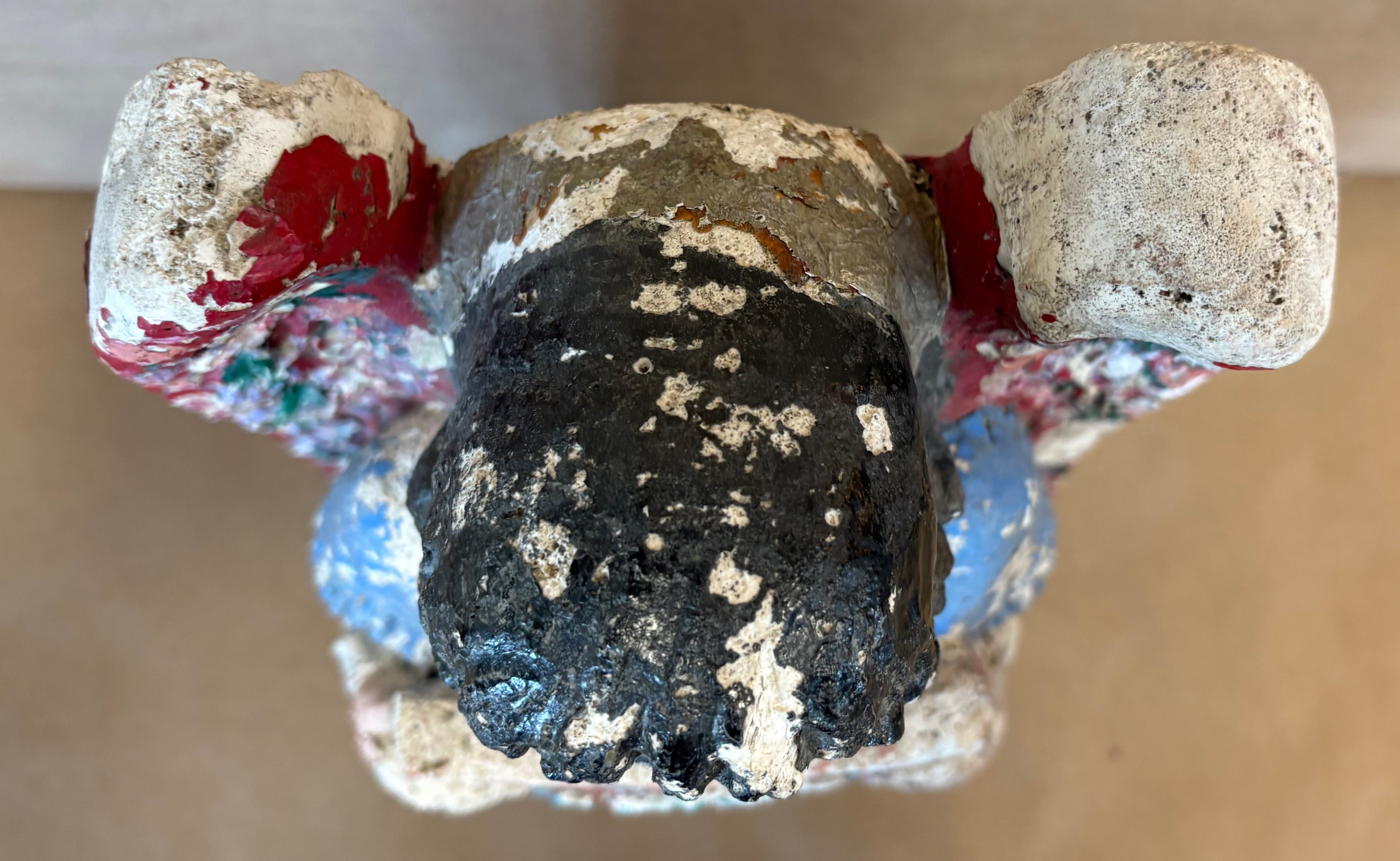 This unique garden statue is made of high-quality cement and features a vintage design of a winged angel. Perfect for adding a touch of elegance to any outdoor space or indoor spot. Hand painted.